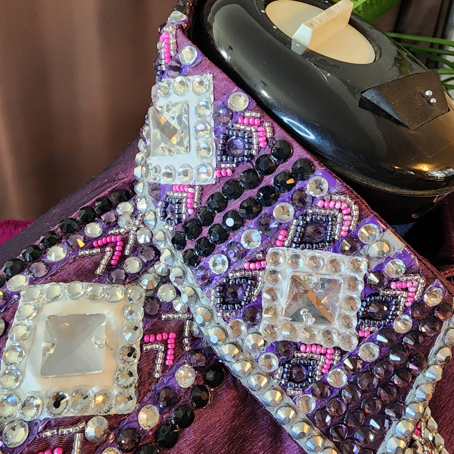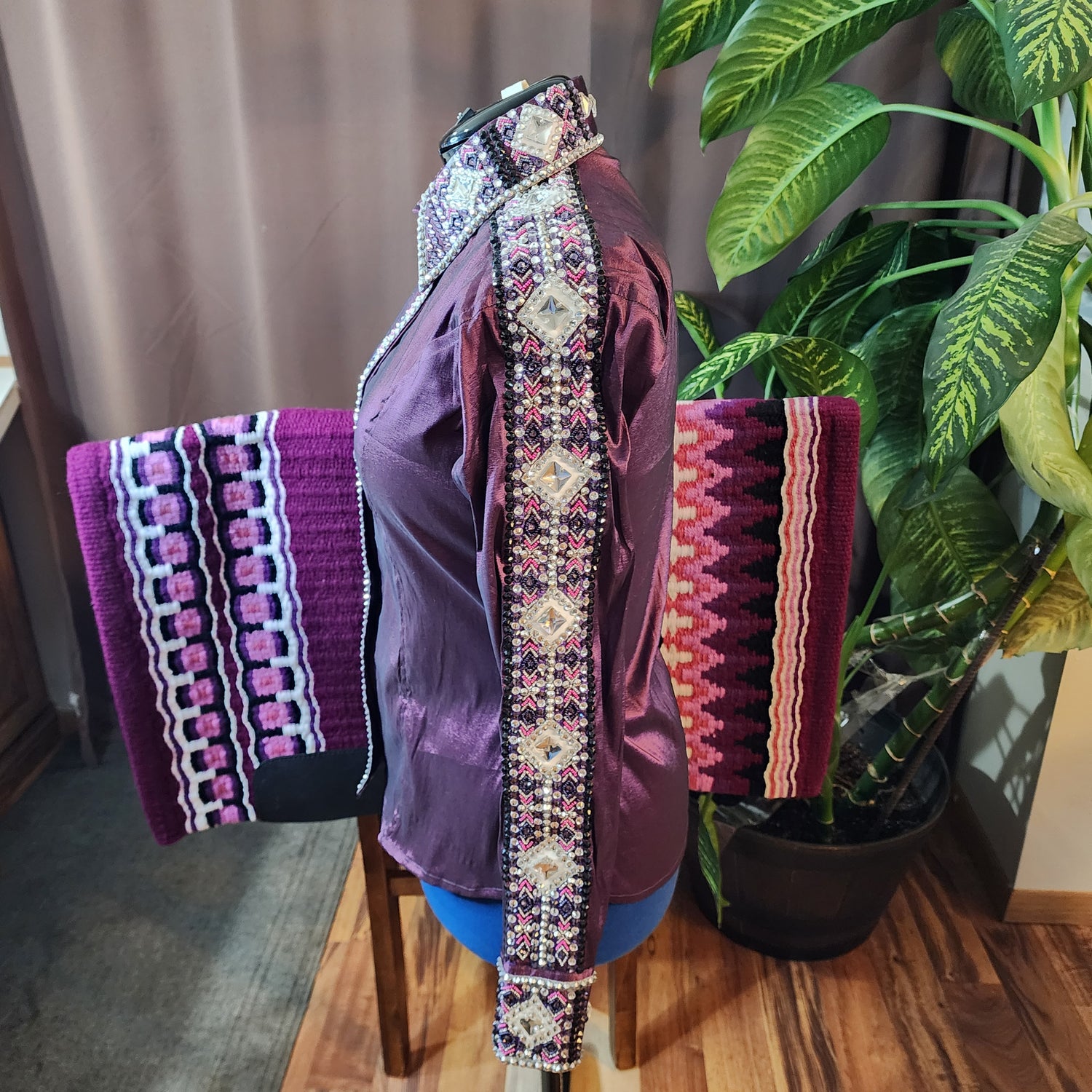 CUSTOM ORDER Plum/Eggplant stretch taffeta hidden zipper day shirt. $500