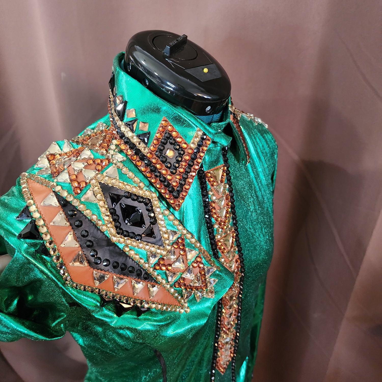 Small Green metallic stretch day shirt. Lightweight and cool fabric. Lots of stretch. $350