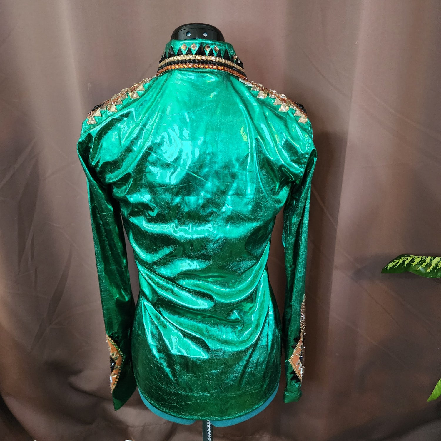 Small Green metallic stretch day shirt